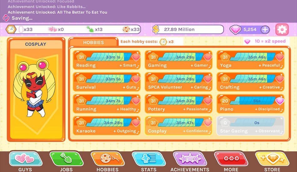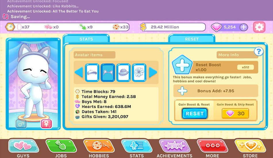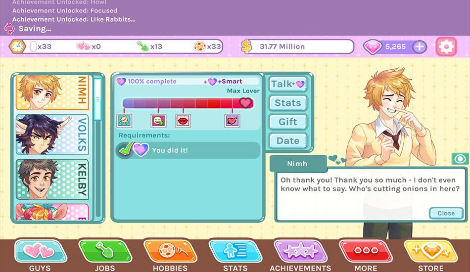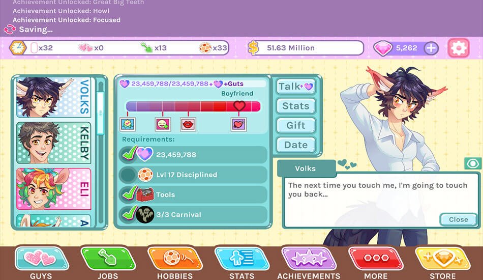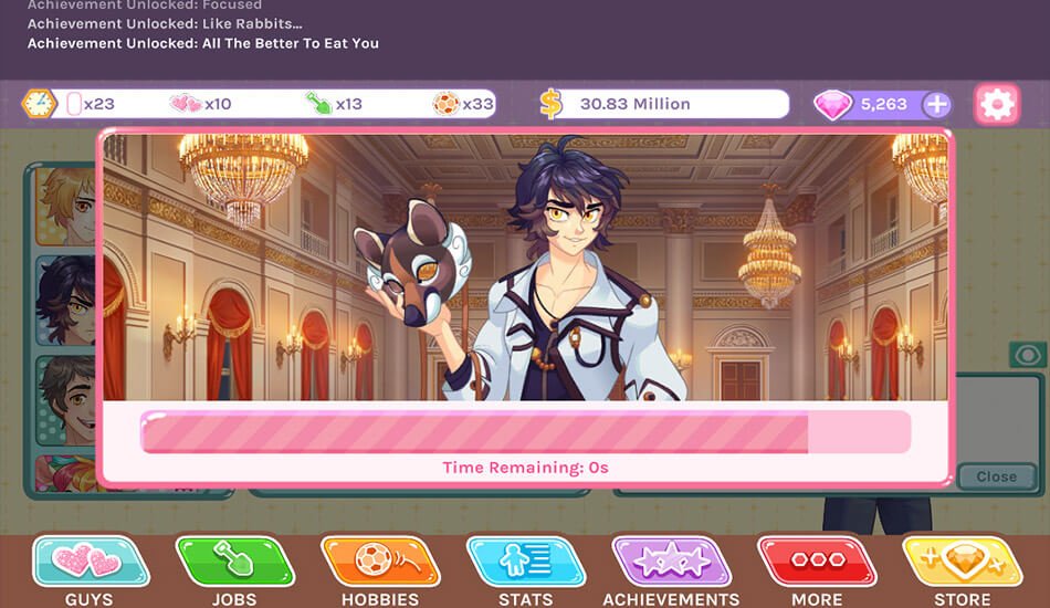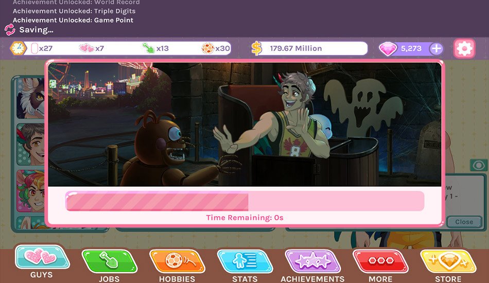 So work those jobs, raise your stats, and search the city for some oddly talkative animals to begin your quest. You can also take a break from questing by striking up a conversation with other sexy boys on your phone, and unlocking even more sexy pics and confessions. This game will have you blushing by the end for sure!